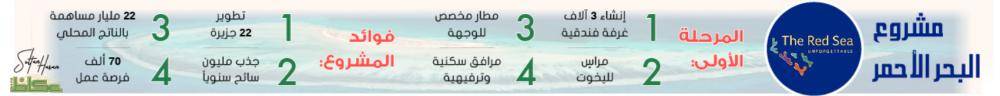 ومع الانتهاء من كافة مراحل المشروع، سيتم تطوير 22 جزيرة من أصل أكثر من 90 جزيرة، واستحداث أكثر من 70 ألف فرصة عمل، كما سيقوم بدور مهم في دفع عجلة التنوع الاقتصادي بالمملكة من خلال جذب نحو مليون سائح سنوياً، والمساهمة بإضافة 22 مليار ريال سعودي إلى الناتج المحلي للمملكة.