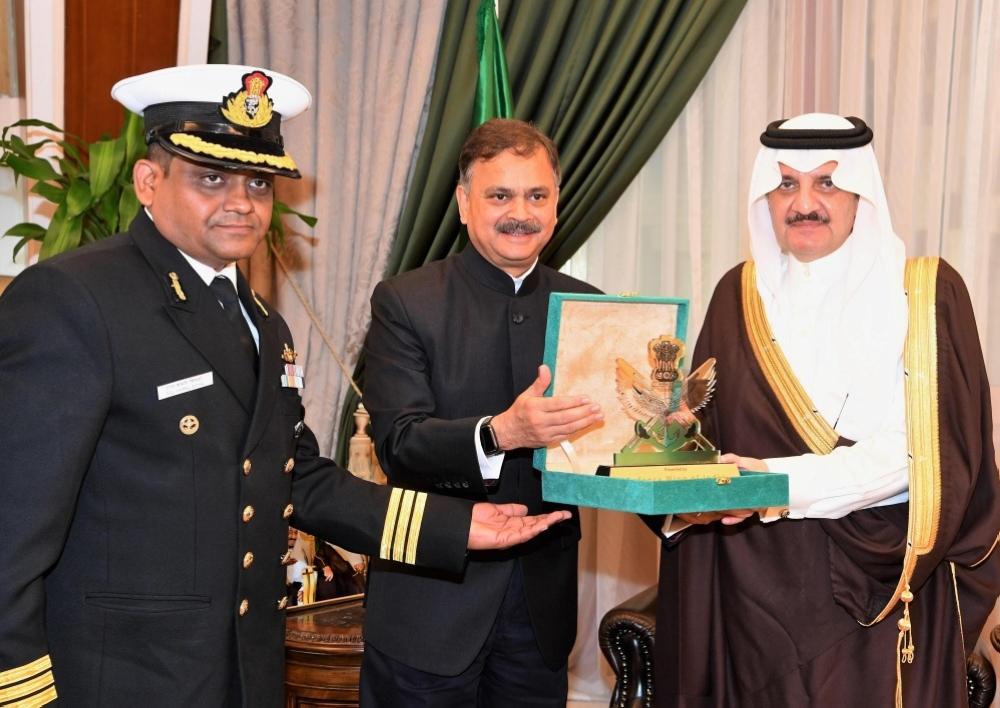 ورحب الأمير سعود بن نايف في بداية اللقاء بالسفير الهندي وقائد السفينة والمساعدين، مؤكداً عمق العلاقات بين البلدين الصديقين، والعمل المشترك والتعاون في مختلف المجالات، بين المملكة والهند، متمنيا التوفيق للسفير الهندي والتقدم والازدهار للهند.