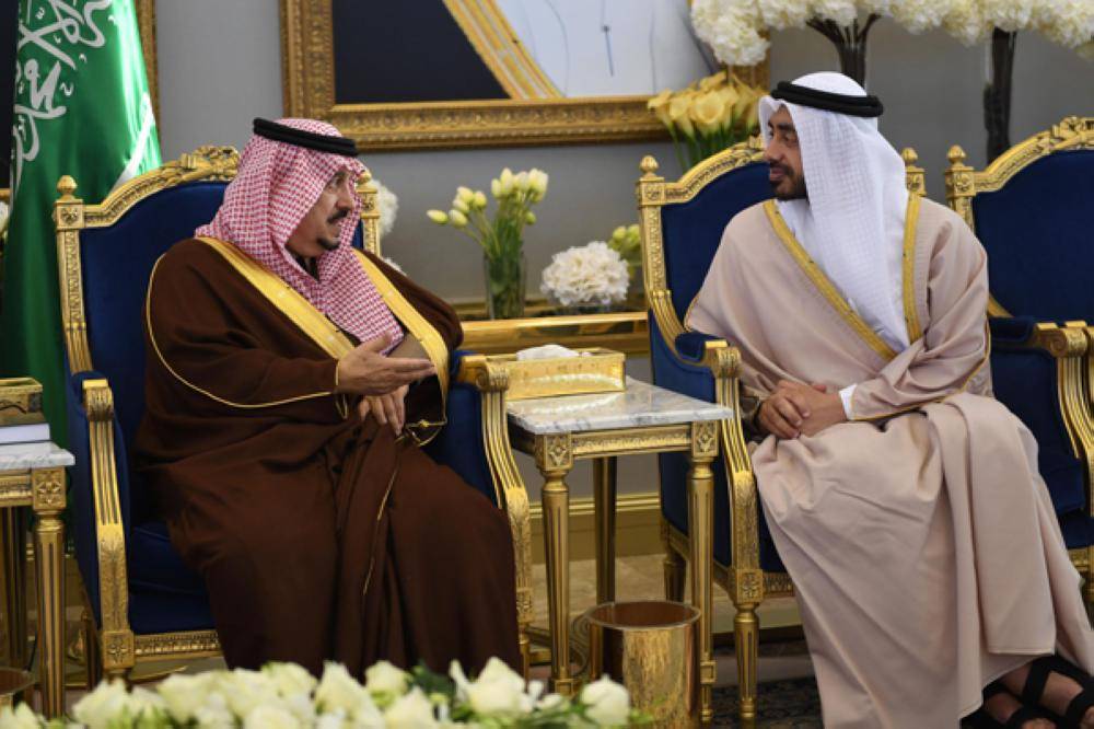 وكان في استقباله في مطار الملك خالد الدولي الأمير فيصل بن بندر بن عبدالعزيز أمير منطقة الرياض، وسفير دولة الإمارات لدى المملكة الشيخ شخبوط بن نهيان آل نهيان، ومندوب عن المراسم الملكية.