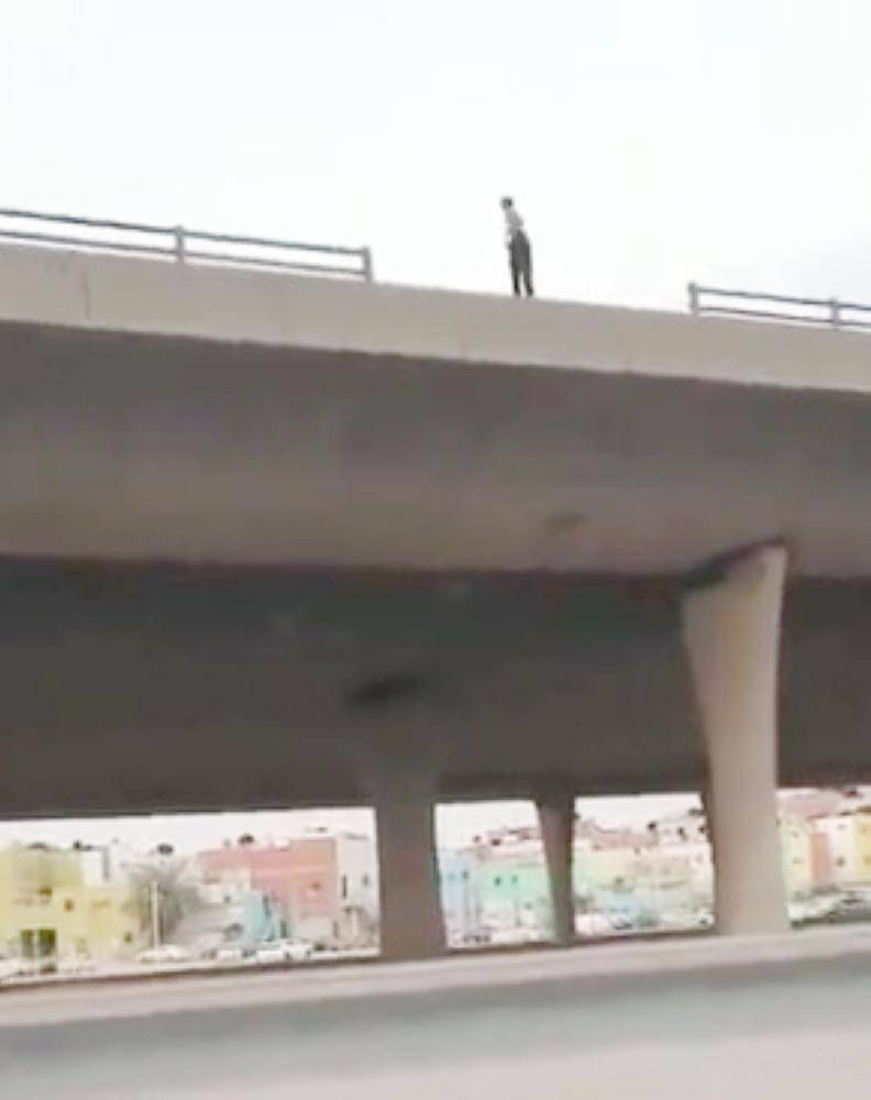 تمكَّن رجال دوريات الأمن في محافظة جدة من إنقاذ حياة شخص حاول إيذاء نفسه بالقفز من أحد الجسور.