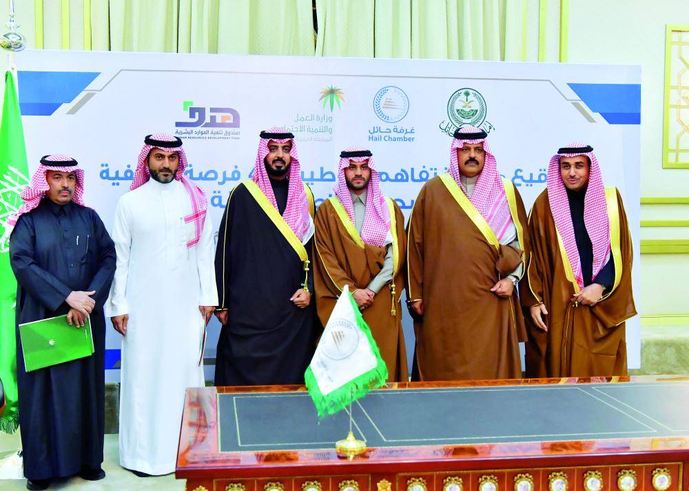 شهد أمير منطقة حائل الأمير عبدالعزيز بن سعد بن عبدالعزيز بحضور نائبه الأمير فيصل بن فهد بن مقرن، توقيع اتفاقين لـ 3 جهات بالمنطقة؛ الأول: لتوطين 424 وظيفة صحية بالقطاع الخاص بين فرع وزارة العمل والتنمية الاجتماعية والغرفة التجارية الصناعية وفرع صندوق تنمية الموارد البشرية (هدف)، والاتفاق الثاني بين فرع الوزارة والغرفة لتمكين أبناء الأسر الضمانية من سوق العمل. وثمن أمير حائل الدعم السخي من القيادة الرشيدة للبرامج والمشاريع الهادفة لتمكين شباب وفتيات الوطن وتأهيلهم لسوق العمل، مؤكدا التعاون بين فرع وزارة العمل والتنمية الاجتماعية والغرفة التجارية و"هدف"، حاثا على مضاعفة الجهود والعمل على مزيد من إيجاد فرص العمل لأبناء وفتيات المنطقة.
