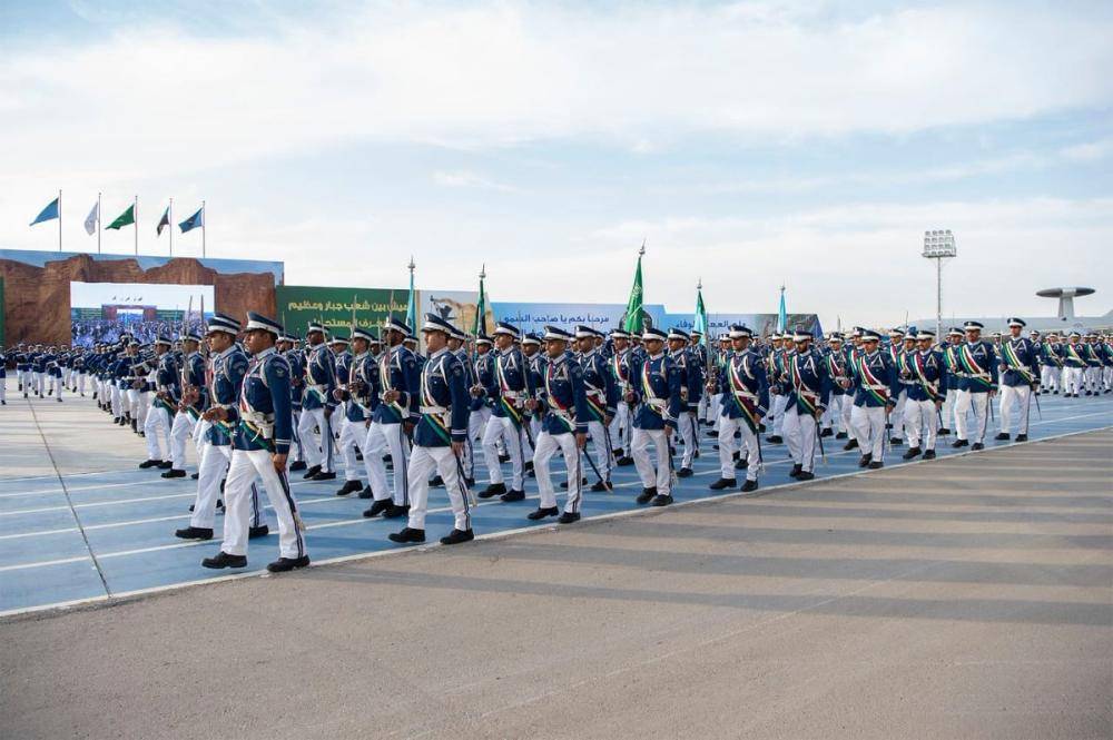 وقال:«ها هي كوكبة من أبناء هذا الوطن المعطاء تتشرف في هذا اليوم بالانضمام لمواكبة المجد والإباء متسلحين بالعلم والإيمان عاقدين العزم باذلين الغالي والنفيس في سبيل الذود عن الدين والملك والوطن، يشاركهم فرحتهم هذا اليوم إخوة أشقاء من المملكة الأردنية الهاشمية، ومملكة البحرين، وجمهورية السودان، ودولة الكويت، بعد سنوات أمضوها في التحصيل والدراسة».