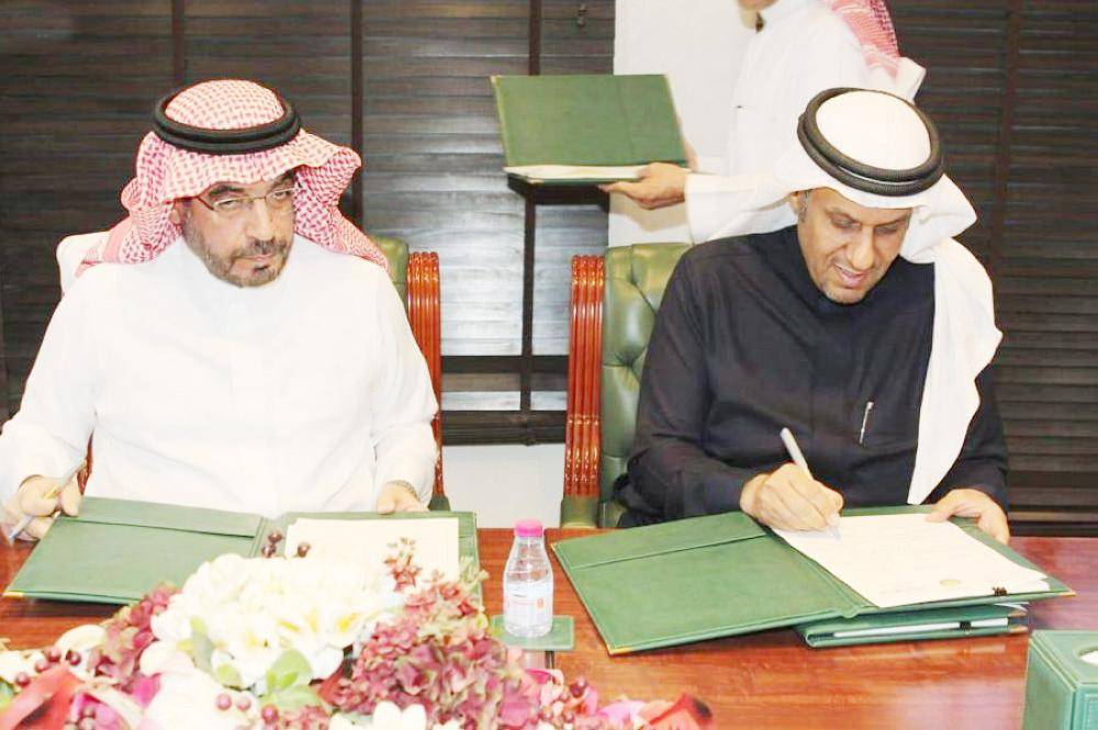 ممثلا الخدمات الطبية والشركة أثناء توقيع الاتفاقية.