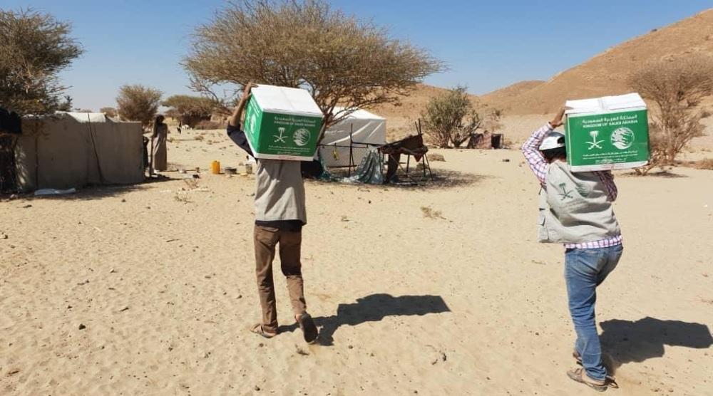 «سلمان للإغاثة» يوزع 44.4 طن سلال غذائية على النازحين في مديرية الحزم بالجوف