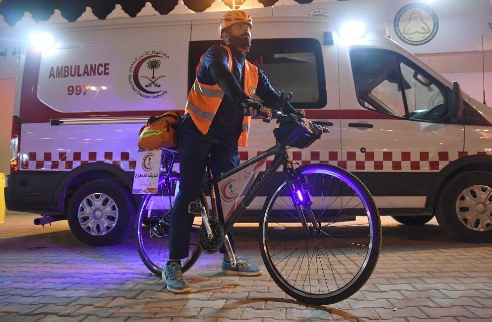 ورصدت الانطلاقة التي شارك فيها عشرة متطوعين على الدراجات الهوائية المجهزة بحقيبة الإسعافات الأولية، ليقدم المتطوع من على دراجته الهوائية الخدمات الإسعافية الأولية للمصابين والكشف على الحالات إلى أن يتم وصول الفرق الطبية وسيارة الإسعاف المخصصة، حيث تأتي فكرة استخدام الدراجات لأول مرة على مستوى المملكة من أرض الجنادرية لتسخيرها في تقديم الخدمات الإسعافية أثناء الحشود وصعوبة الوصول للمحتاجين.
