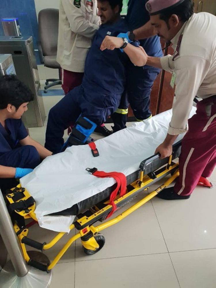 وأكد أنه جرى التعامل مع الحادث مباشرة من قِبل فريق الأمن والسلامة بالمبنى، وتم فتح البوابة عن ساق الزميل ونقله بواسطة الهلال الأحمر إلى مستشفى الملك عبدالعزيز، حيث تم الكشف عليه وتأكد من عدم إصابته بكسور، وتعرضه لإصابة طفيفة في الساق الأيسر، وعليه، فقد تم منحه الرعاية الطبية اللازمة.