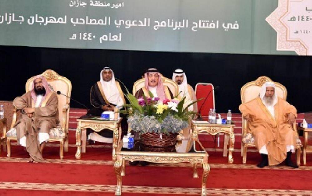 رعى أمير منطقة جازان الأمير محمد بن ناصر بن عبدالعزيز، مساء يوم أمس (الأربعاء)، حفل افتتاح فعاليات البرامج الدعوية المصاحبة لمهرجان جازان الشتوي الحادي عشر «جازان الفل.. مشتى الكل» للعام الحالي 1440هـ، التي ينظمها فرع وزارة الشؤون الإسلامية والدعوة والإرشاد بالمنطقة، وذلك بجامع خادم الحرمين الشريفين في مدينة جازان.