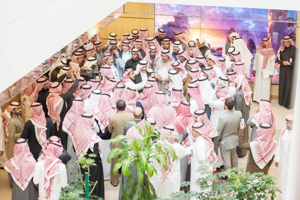 الأمير سلطان في «سيلفي» مع منسوبي هيئة السياحة أمس في الرياض.