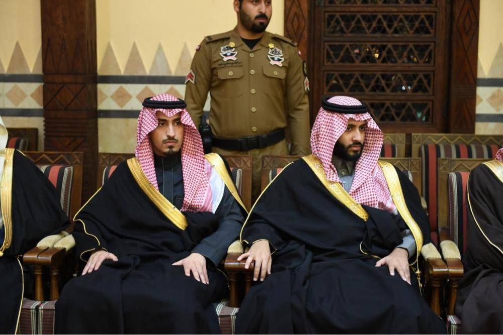 ووصل في معية أمير عسير الأمراء خالد بن الوليد بن طلال بن عبدالعزيز، وعبدالعزيز بن طلال بن عبدالعزيز، وعبدالرحمن بن طلال بن عبدالعزيز، وعبدالعزيز بن تركي بن طلال، وتركي بن فيصل بن عبدالمجيد، ومتعب بن فهد الفرحان، وسعد بن عبدالله الفرحان.