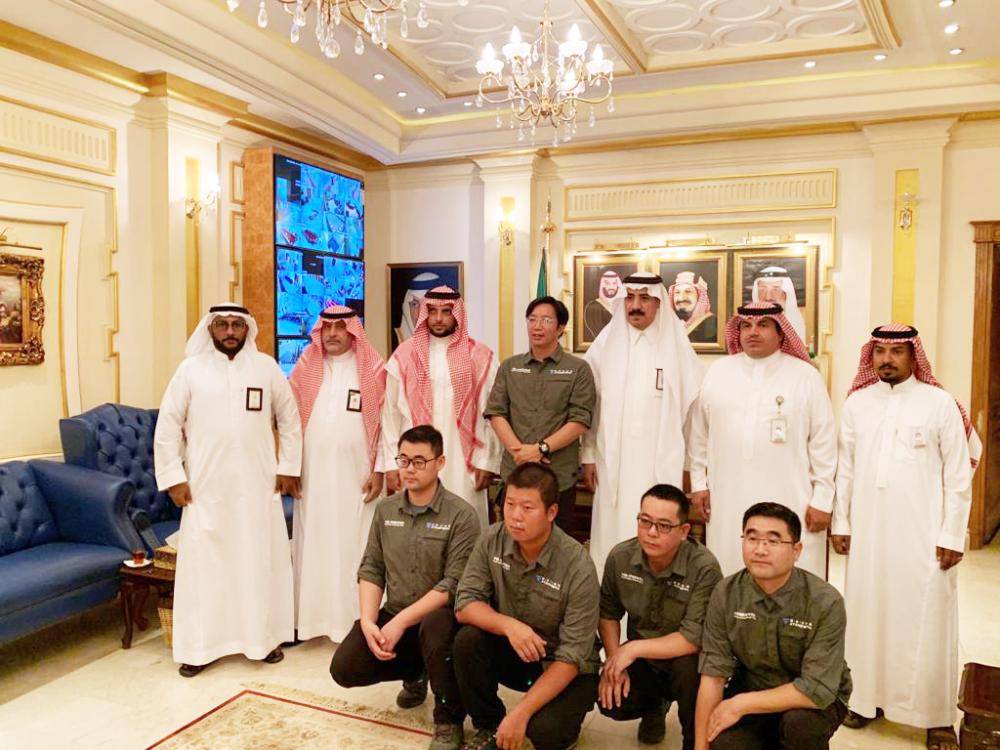 الفريق الصيني السعودي مع القباع. (عكاظ)