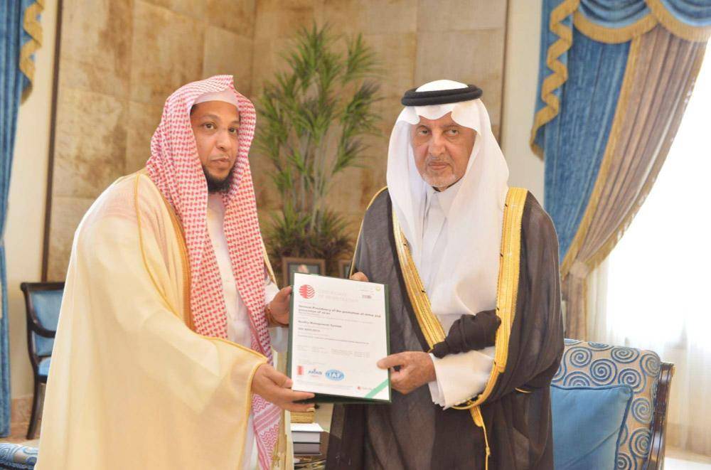 كما اطلع أمير المنطقة خلال استقباله في مقر الإمارة بجدة أمس (الإثنين) مدير عام فرع الرئاسة العامة لهيئة الأمر بالمعروف والنهي عن المنكر بمنطقة مكة المكرمة الشيخ فؤاد العمري، يرافقه عدد من منسوبي الفرع، على شهادة الآيزو العالمية لجودة العمل في موسم الحج، التي حصلت عليها مراكز الهيئة التوجيهية ونقاطها في مكة المكرمة والمدينة المنورة والمشاعر المقدسة.