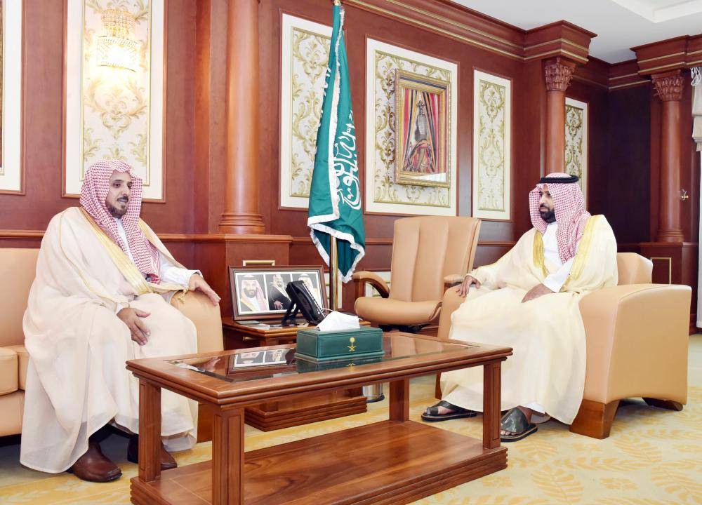 الأمير محمد بن عبدالعزيز مستقبلا رئيس فرع النيابة العامة. (عكاظ)
