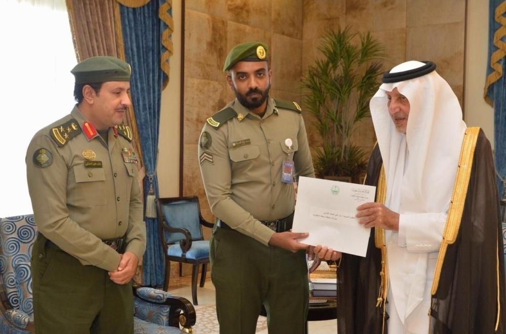 خالد الفيصل يُكرّم عريفاً ضَبَطَ قضية تزوير في وثائق سفر