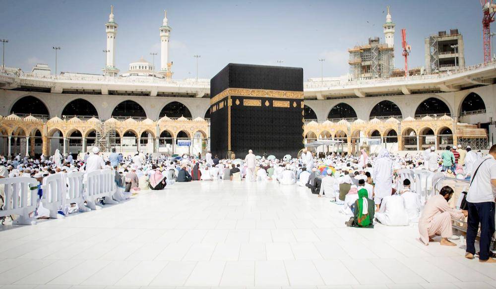جموع المصلين يؤدون صلاة الجمعة في المسجد الحرام.