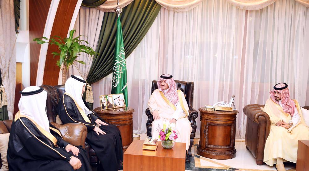أمير الشرقية مستقبلاً منسوبي جسر الملك فهد. (عكاظ)