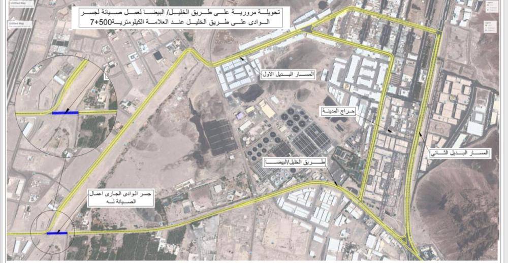 اغلق فرع وزارة النقل بالمدينة المنورة طريق البيضاء وذلك بالتنسيق مع الدفاع المدني وادارة المرور وذلك لوجود أعمال صيانة طارئة لجسر وادي النقمي، وطالب المرتادين باستخدام الطرق البديلة.