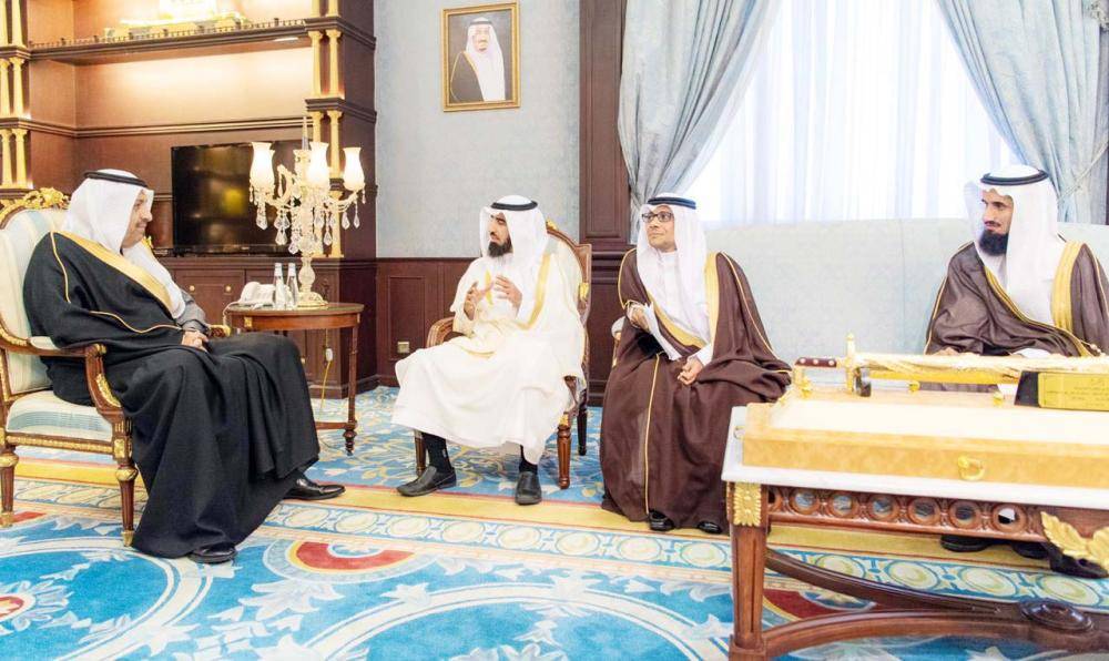 أمير الباحة خلال استقباله منسوبي الكهرباء. (عكاظ)