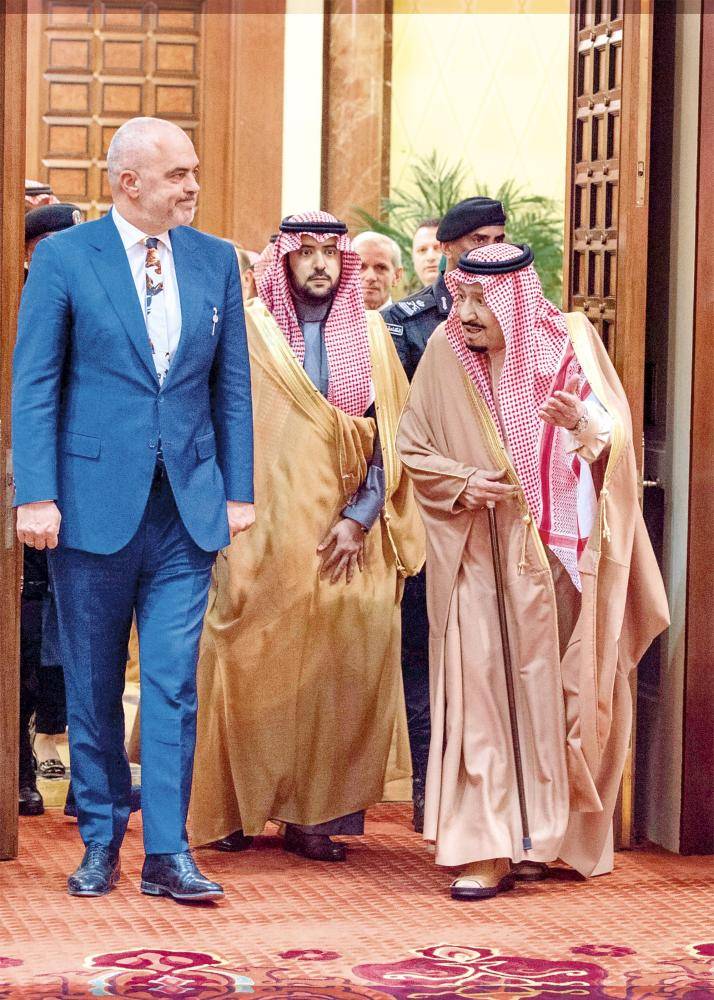 وكان خادم الحرمين الشريفين استقبل في قصره بالرياض أمس رئيس مجلس الوزراء الألباني، مرحبا به والوفد المرافق له في المملكة، فيما أبدى آدي راما سعادته بزيارة السعودية ولقائه خادم الحرمين الشريفين.