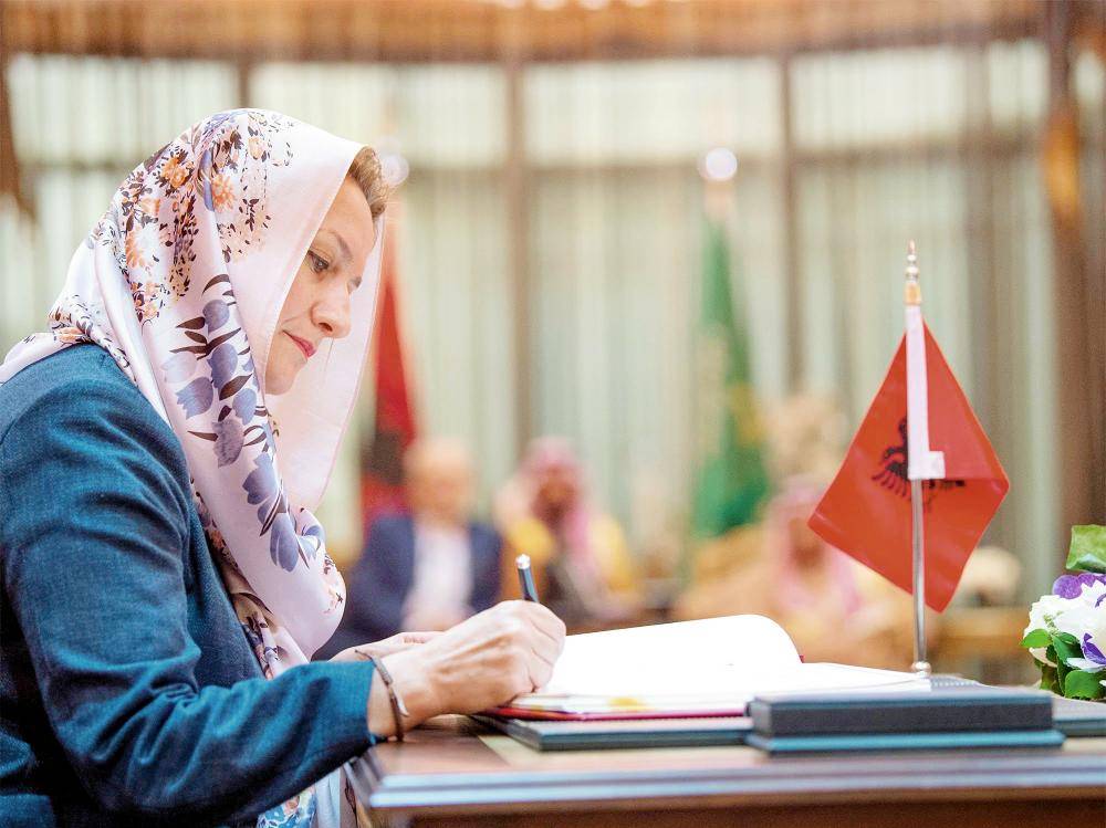 وشهد الملك سلمان، والرئيس آدي راما، توقيع مذكرة تفاهم واتفاقين بين حكومة المملكة العربية السعودية وحكومة جمهورية ألبانيا.