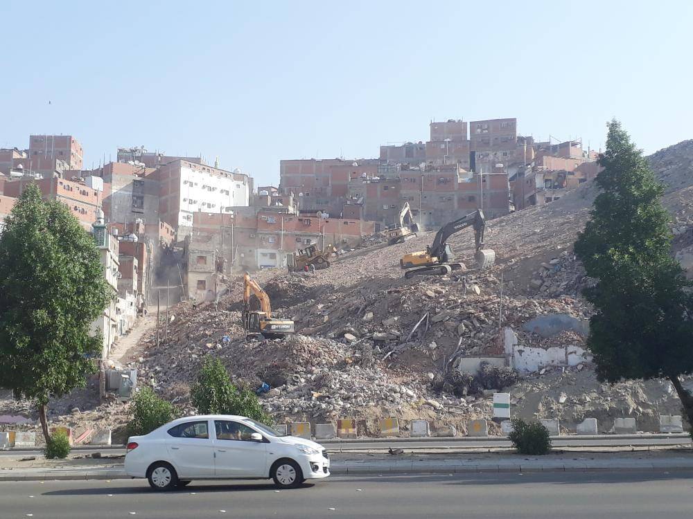 آليات الشركة المطورة تمارس عملها في إزالة المباني بالنكاسة.