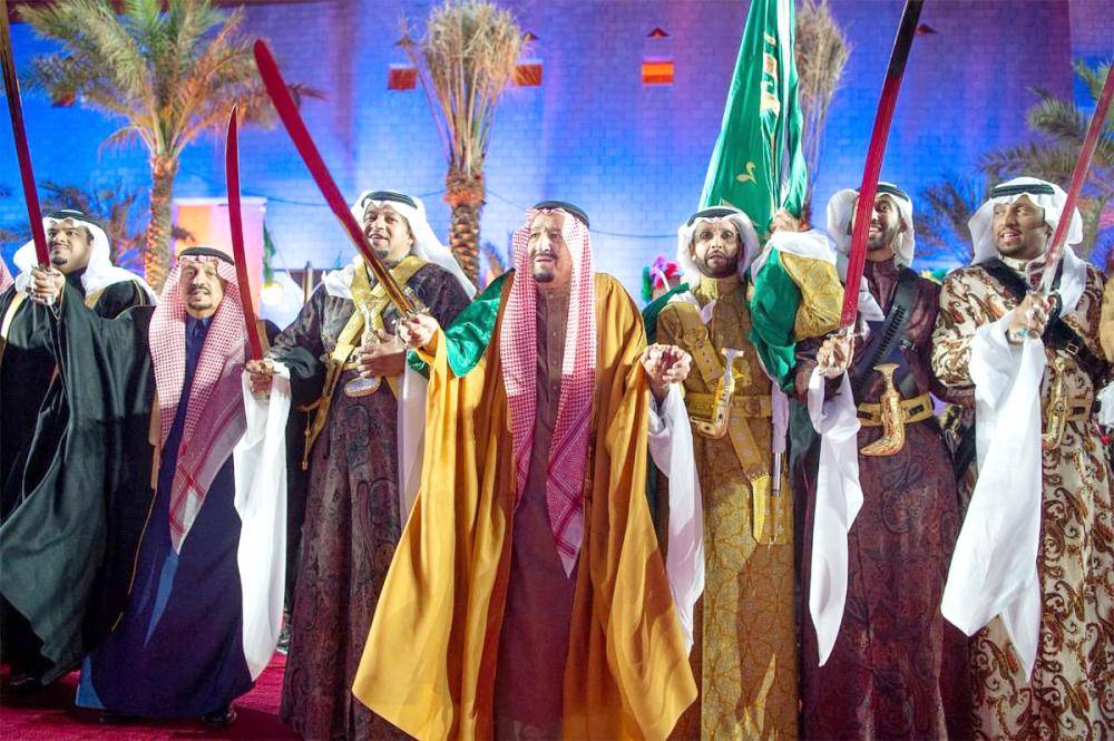 عقب ذلك، أديت العرضة السعودية، التي شارك في أدائها خادم الحرمين الشريفين، ثم شرف الملك سلمان حفل العشاء الذي أقيم بهذه المناسبة.