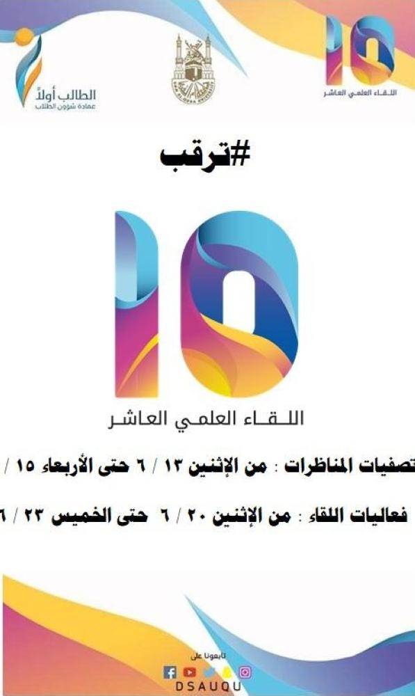 ينطلق يوم الاثنين القادم اللقاء العلمي العاشر لطلاب وطالبات جامعة أم القرى بمكة المكرمة، برعاية مدير جامعة أم القرى الدكتور عبدالله بافيل، وبإشراف وكيل الجامعة للشؤون التعليمية الدكتور عبدالعزيز سروجي ومتابعة مستمرة من عميد شؤون الطلاب الدكتور عمرو السقاف.
