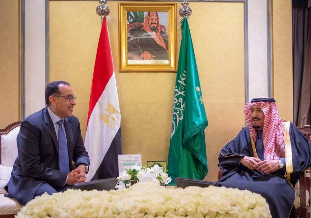 خادم الحرمين الشريفين يستعرض مع رئيس الوزراء المصري مجالات التعاون بين البلدين الشقيقين