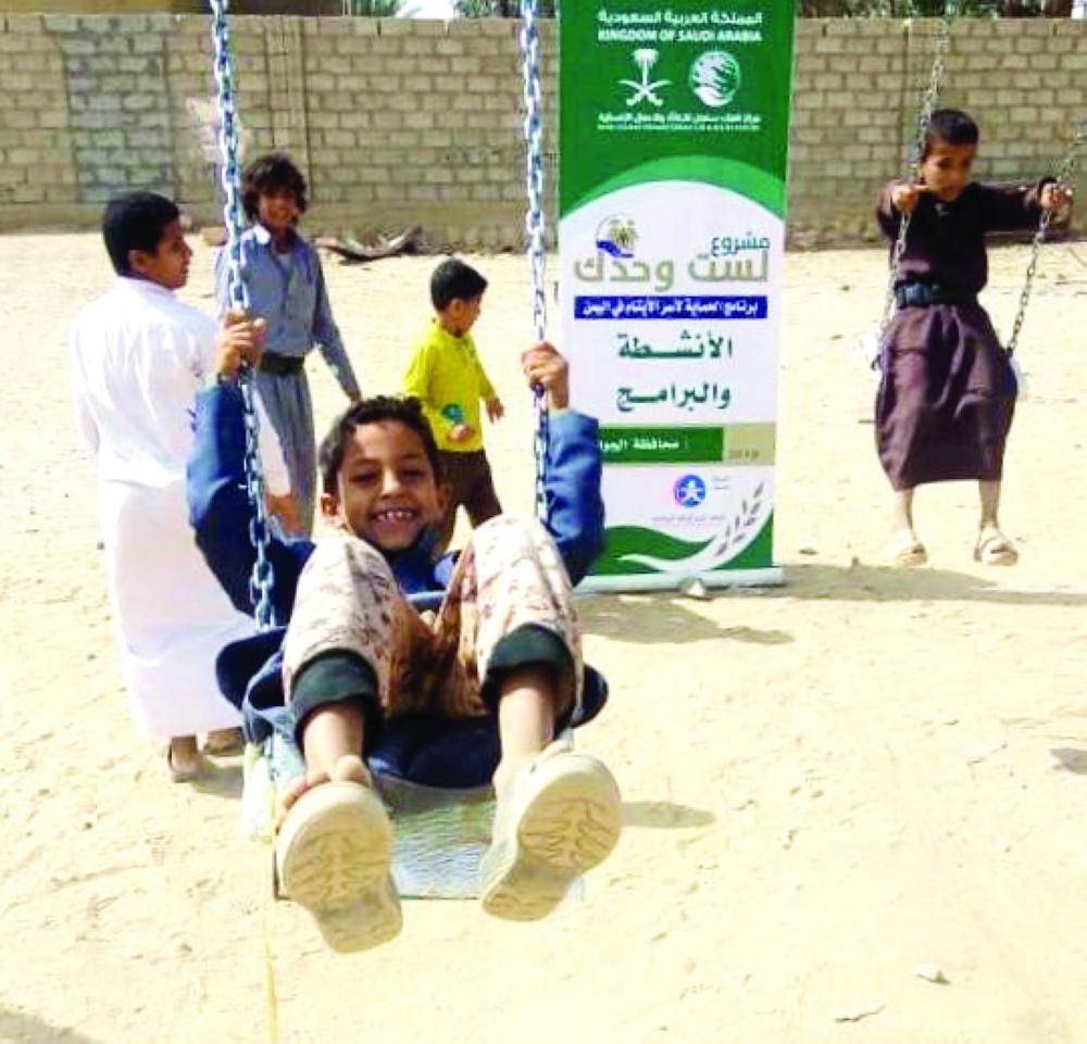 واصل مركز الملك سلمان للإغاثة والأعمال الإنسانية في محافظة الجوف تنفيذ مشروع «لست وحدك» لحماية أسر الأيتام في اليمن. ونفذ البرنامج أنشطة متنوعة لـ120 يتيما ويتيمة من محافظة الجوف، في المساحات الصديقة للطفل، التي استُحدثت لتكون آمنة وفيها قواعد السلامة للأطفال ليستعيدوا الشعور بالحياة الطبيعية، وتوفر لهم فرصا للعب وتعزيز المرونة والمهارات في بيئة آمنة ومحفزة.
