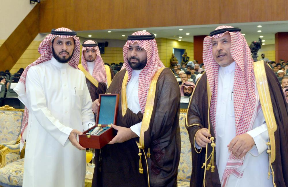 وفي ختام الحفل كرم الأمير محمد بن عبدالعزيز ضيوف الملتقى بالإضافة إلى الطلاب المتميزين في برنامج تعليم العربية لغير الناطقين بها، ثم تسلم سموه درعاً تذكارياً بهذه المناسبة من مدير الجامعة.