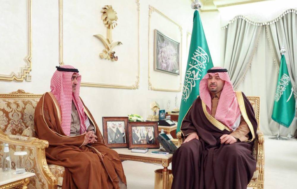 الأمير فيصل بن خالد خلال استقبال مدير فرع إدارة المجاهدين.(عكاظ)