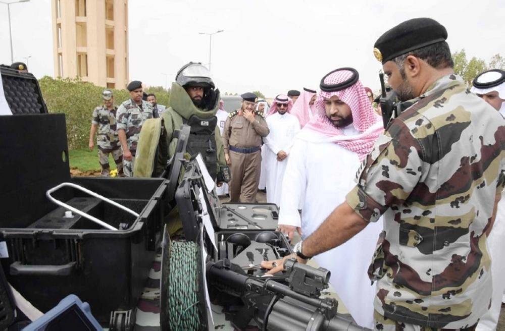 بعد ذلك، اطلع أمير جازان بالنيابة على معرض الأسلحة والآليات المستخدمة من قِبل رجال قوات الطوارئ الخاصة، مستمعاً لشرح مفصل عنها.