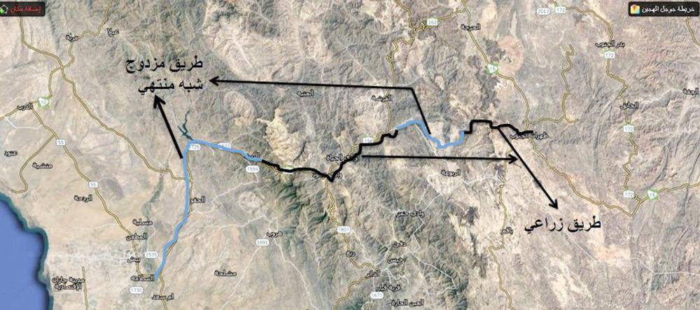 خريطة توضح بعض الطرق الجبلية في الجنوب. (عكاظ)