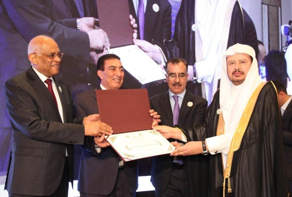 رئيس «الشورى» يتسلم جائزة التميز من الاتحاد البرلماني العربي