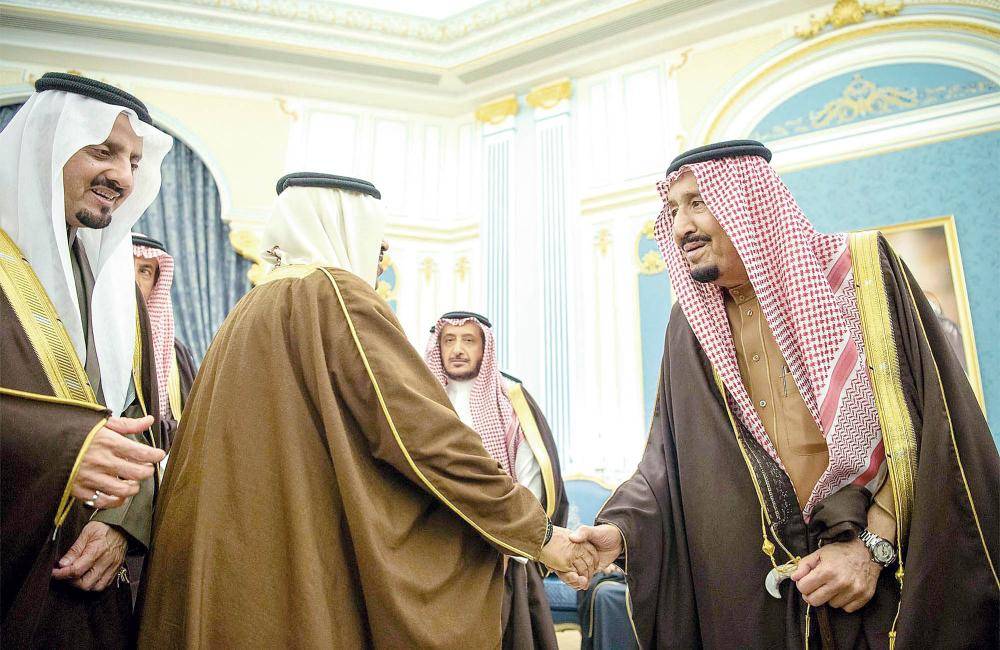 استقبل خادم الحرمين الشريفين الملك سلمان بن عبدالعزيز، في قصر اليمامة بالرياض أمس (الإثنين)، الأمراء، ومفتي عام المملكة، والعلماء، وجمعاً من المواطنين الذين قدموا للسلام عليه.