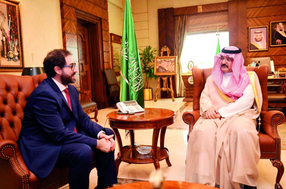 الأمير مشعل بن ماجد مستقبلا السفير الإيطالي. (عكاظ)