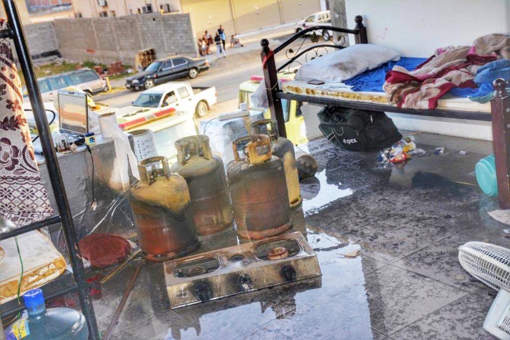 وأشارت المعاينة الأولية التي أجراها فريق التحقيق إلى أن الحريق شب نتيجة تسرب غاز في الطابق الثاني من البناية التي يسكنها عامل، ما أدى إلى تشبع المكان بغاز البروبان الذي انفجر إثر تعرضه لاشتعال لحظي نتج عنه إصابتان نقلتا عن طريق الهلال الأحمر للمستشفى لتلقي العلاج. ويجري خبراء التحقيقات تحريات إضافية؛ للتأكد من عدم وجود شبهة جنائية في الحادثة.