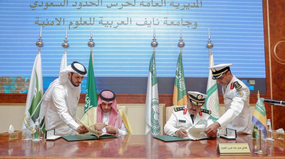 وقعت المديرية العامة لحرس الحدود مذكرتي تفاهم مع جامعة نايف العربية للعلوم الأمنية وجامعة بيشة، في مجالات: التعليم، والتدريب، والبحث العلمي، وخدمة المجتمع، وذلك بحضور مدير عام حرس الحدود الفريق عوّاد البلوي، ورئيس جامعة نايف العربية للعلوم الأمنية الدكتور عبدالمجيد البنيان، ومدير جامعة بيشة الدكتور أحمد نقادي.