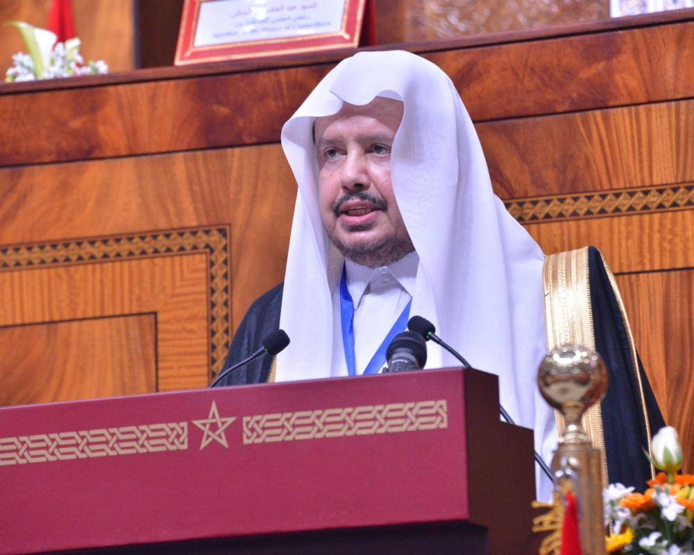 وأكد خلال إلقاء كلمة المملكة أمام الدورة الـ14 لمؤتمر اتحاد مجالس الدول الأعضاء بمنظمة التعاون الإسلامي بمقر البرلمان المغربي في الرباط اليوم (الأربعاء)، استمرار بلاده في مساعيها بالتعاون مع المجتمع الدولي في بذل الجهود المادية والمعنوية لمكافحة هذه الآفة وتمويلها ومحاربة الفكر المتطرف، مضيفا «السعودية شأنها مثل الكثير من الدول الأخرى عانت من الإرهاب، وقادت العديد من الجهود الدولية الرائدة لمحاربته على كافة الأصعدة بما في ذلك تجفيف منابعه الفكرية والتمويلية»، منوها إلى أن التعاون الأمني المشترك مع العديد من الدول أثمر عن إحباط العديد من المحاولات الإرهابية الآثمة، مبينا أن المملكة من الدول المؤسسة للتحالف الدولي ضد تنظيم داعش الإرهابي في 2014، وإنشاء المركز العالمي لاستهداف تمويل الإرهاب بالتعاون مع الولايات المتحدة الأمريكية ودول الخليج ومقره العاصمة الرياض في 2018، وقدمت مساعدات تتجاوز 35 مليار دولار لأكثر من 80 دولة في المجالات الإنسانية والخيرية والتنموية.