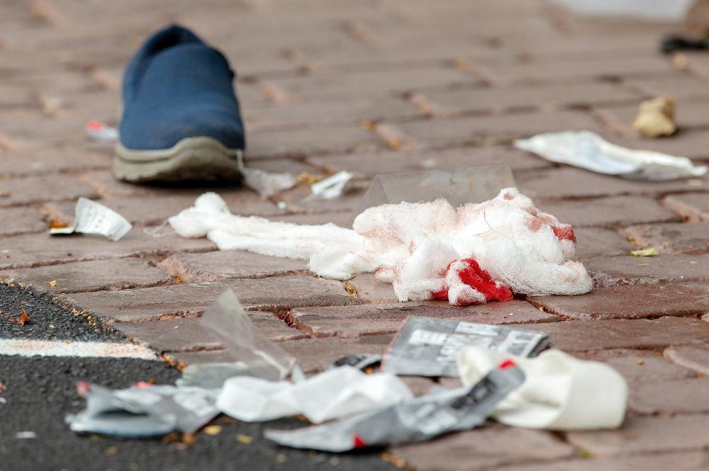 Bloodied bandages on the road following a shooting at the Al Noor mosque in Christchurch, New Zealand, March 15, 2019. REUTERS/SNPA/Martin Hunter ATTENTION EDITORS - NO RESALES. NO ARCHIVES