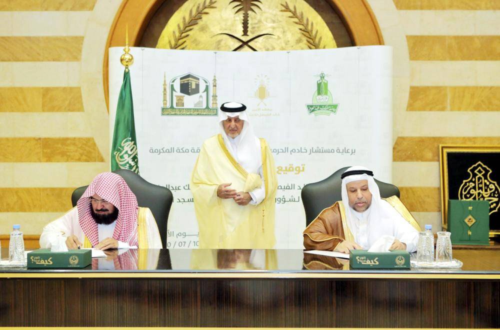 الأمير خالد الفيصل يشهد توقيع مذكرة التعاون بين المعهد ورئاسة الحرمين.