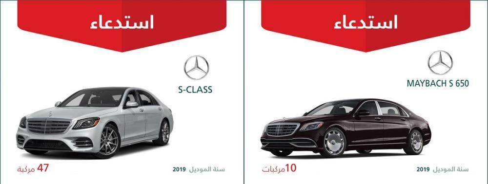 أعلنت وزارة التجارة والاستثمار استدعاء 57 مركبة مرسيدس من طرازي «S-CLASS» و«MAYBACH S 650» موديل 2019.