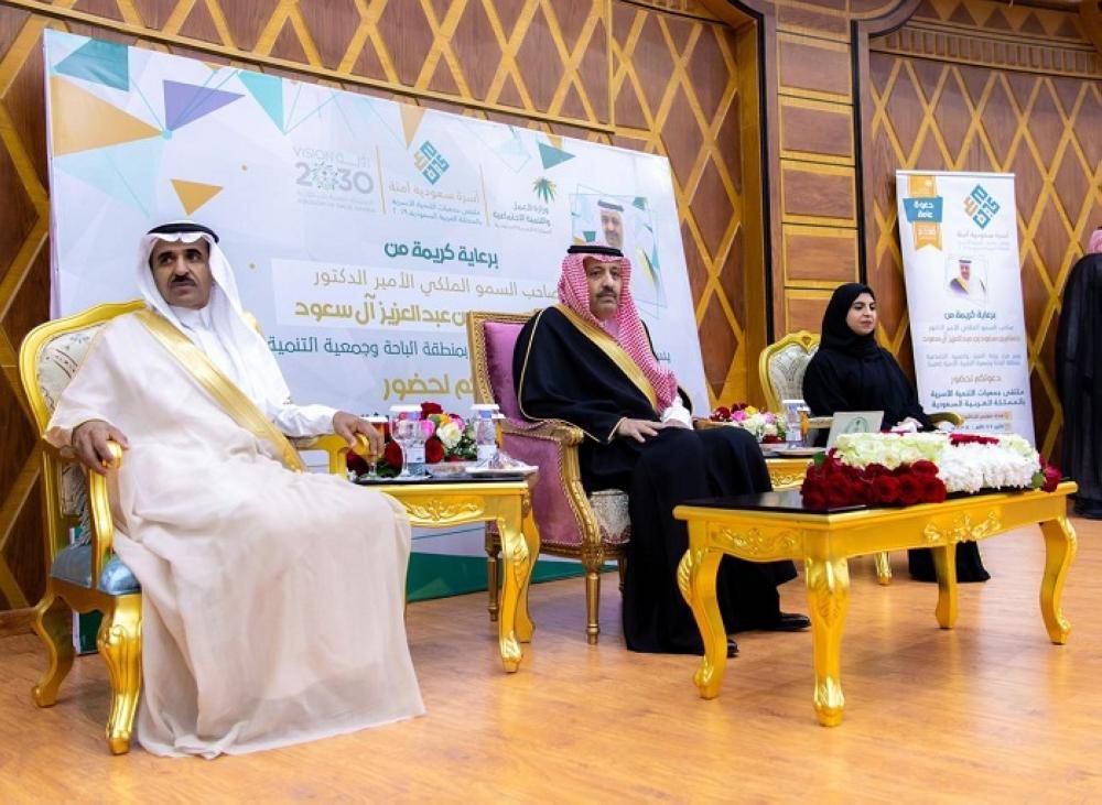 كما كما رعى أمير منطقة الباحة اليوم، ملتقى جمعيات التنمية الأسرية بالمملكة، وذلك بمركز الحسام للمؤتمرات.