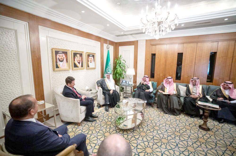 العساف ملتقيا كريستيان بحضور سفير المملكة ببريطانيا الأمير خالد بن بندر.
