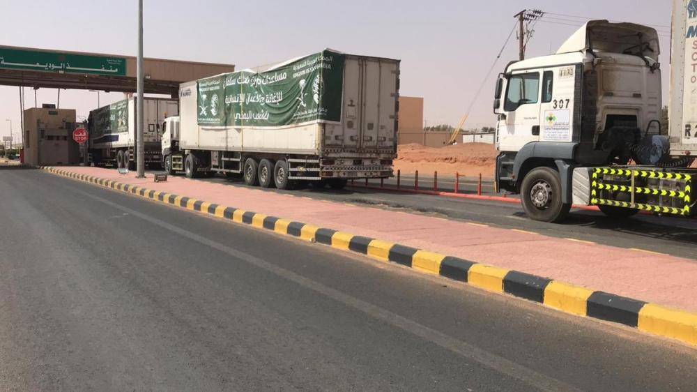 وقد عبرت منفذ الوديعة الحدودي اليوم، شاحنتان إغاثيتان تحملان 50 طناً من المواد الغذائية، تشتمل على 6250 كرتوناً من التمور، مقدمة من مركز الملك سلمان للإغاثة والأعمال الإنسانية تستهدف محافظة الضالع.