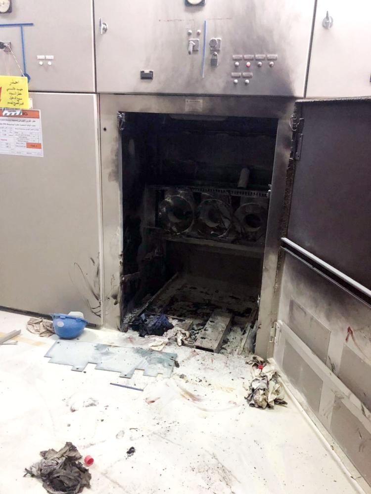 آثار الحريق في غرفة الكهرباء.