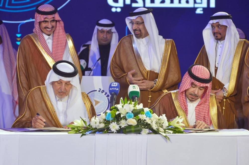 وشهد أمير مكة، بحضور نائبه، توقيع اتفاقية لإنشاء مركز العالم الإسلامي في مشروع الفيصلية، واتفاقية ثانية مع وزير الطاقة المهندس خالد الفالح لإنشاء مشروع للطاقة الشمسية في منطقة مكة المكرمة، أما الاتفاقية الثالثة فقد وقعها مع وزير الحج والعمرة الدكتور محمد بن صالح بنتن، لتشغيل الواحة العالمية في مكة المكرمة، كما تم توقيع الاتفاقية الرابعة مع محافظ هيئة الاستثمار إبراهيم العمر، لتعزيز الاستثمارات المحلية والأجنبية في المنطقة.