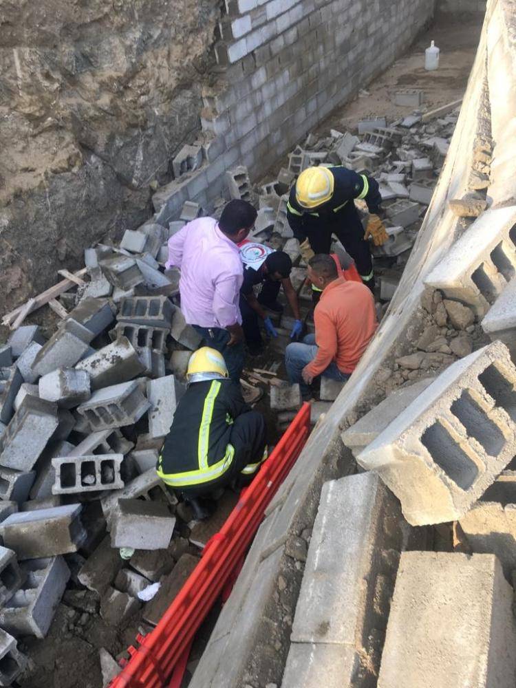 باشرت فرق الدفاع المدني في محافظة خميس مشيط مساء اليوم (الخميس)، حادث انهيار جدار خزان أرضى تحت الإنشاء في حي الإسكان، تقدر مساحته بـ20×4م2، نتج عنه إصابة 5 عُمال من جنسية عربية بإصابات متوسطة.