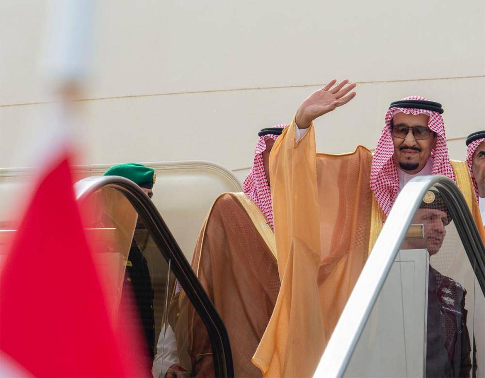 وكان في وداع خادم الحرمين الشريفين بمطار صخير أخوه جلالة الملك حمد بن عيسى آل خليفة ملك مملكة البحرين.