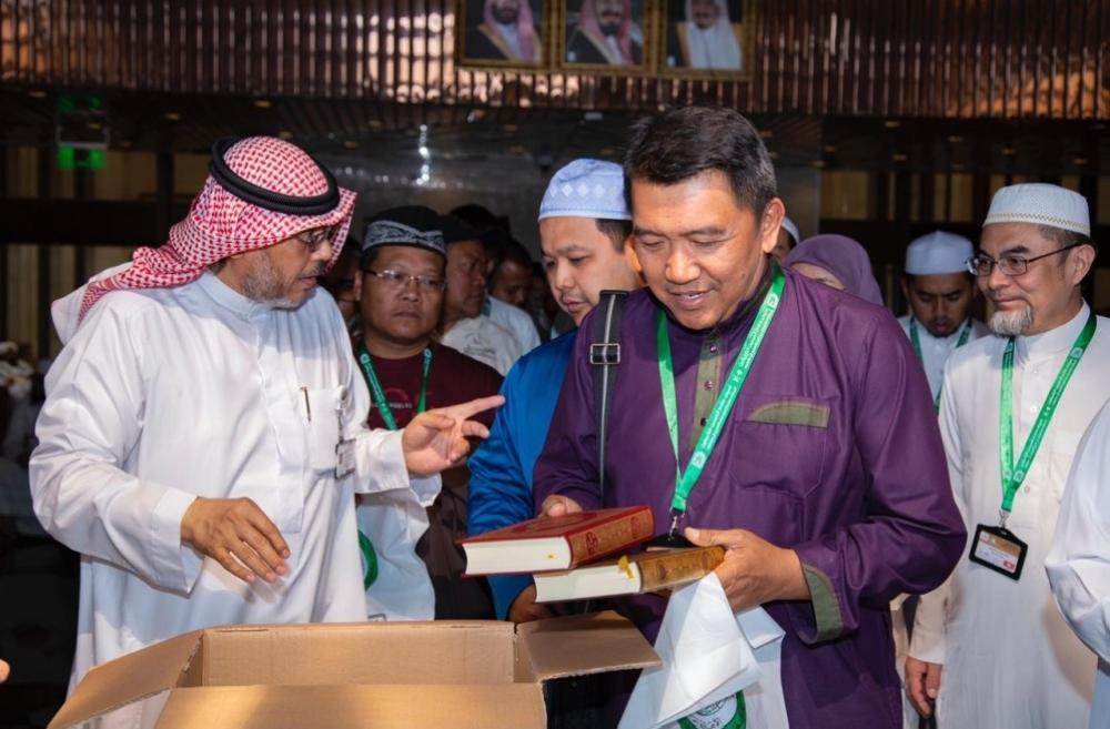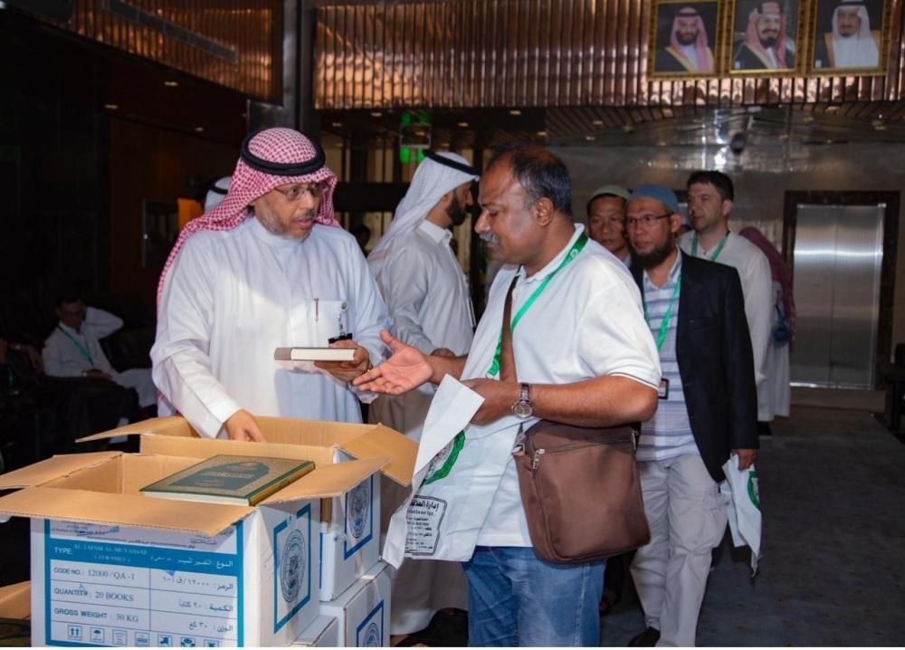 ثم توجهوا إلى مجمع الملك فهد لطباعة المصحف الشريف، وتجولوا في أقسامه، مطلعين على المراحل التي تمر بها طباعة المصحف وترجمات معانيه، واستمعوا إلى شرح وافٍ عن آلية طباعة المصحف وكيفية المراجعة والتدقيق واطلعوا على إصدارات المجمع وقد قدم لهم هدايا مصحف من كل اللغات.