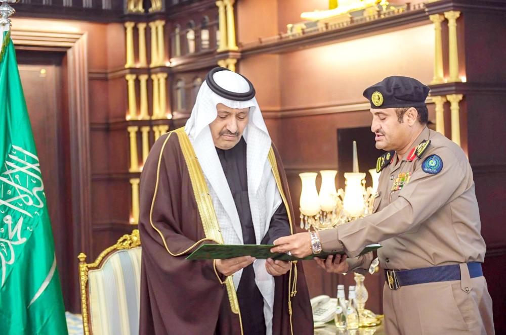 الأمير الدكتور حسام بن سعود أثناء استلام التقرير من الدفاع المدني.
